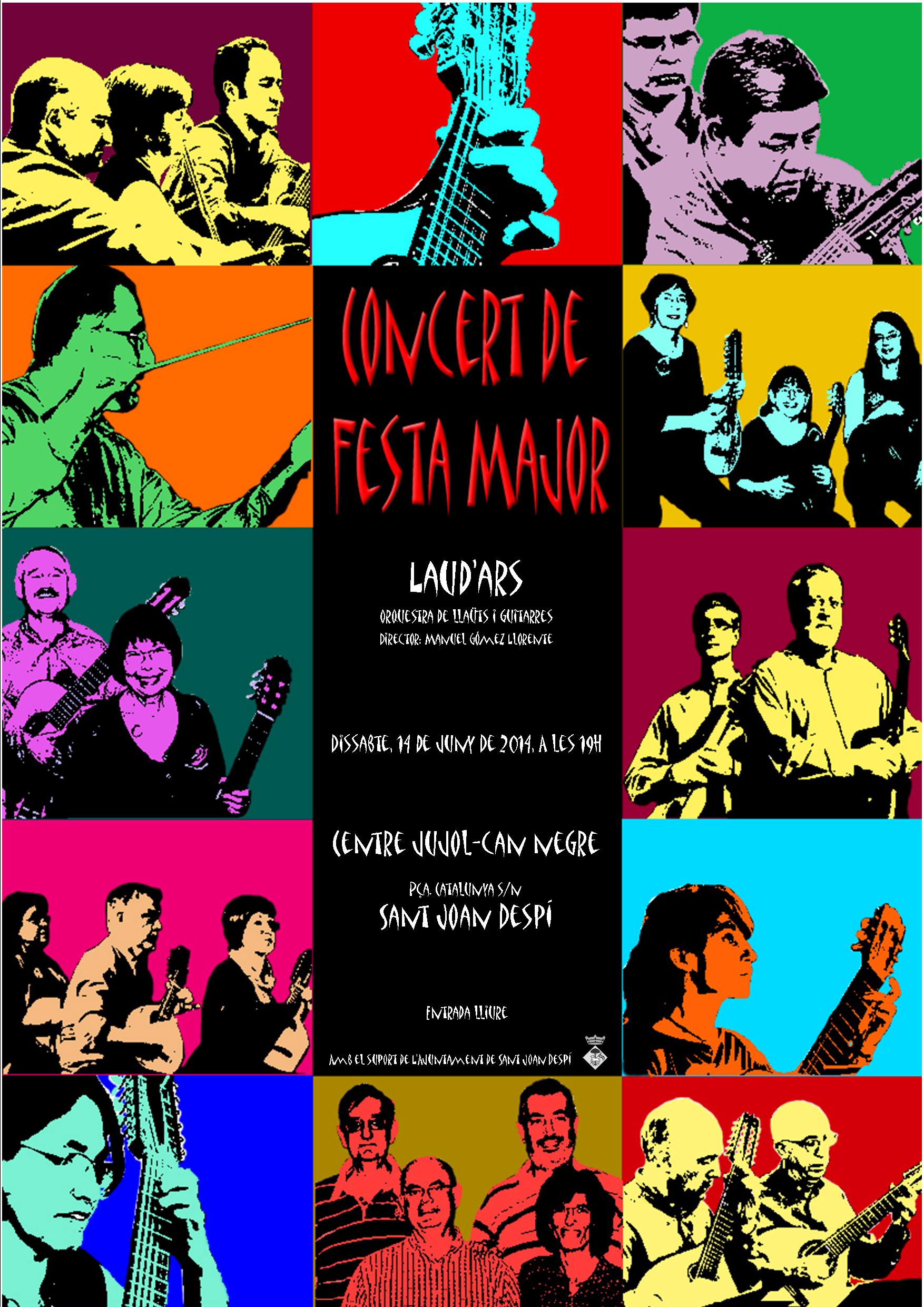 14 juny 2014 Concert de Festa Major 2014 14/06/2014 Concert Festa Major 2014 Lloc: Centre Jujol-Can Negre - Plaça Catalunya s/n - Sant Joan DespíHorari: 19:00 horesOrganitzador: Laud'ArsPreu: Gratuït Document: Programa Concert Festa Major 2014 (1.35 MB)